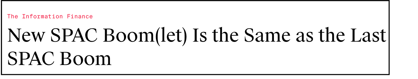 One that dropped the other day is from Ken Brown, who had just written about the resurgence of SPACs in The Information…