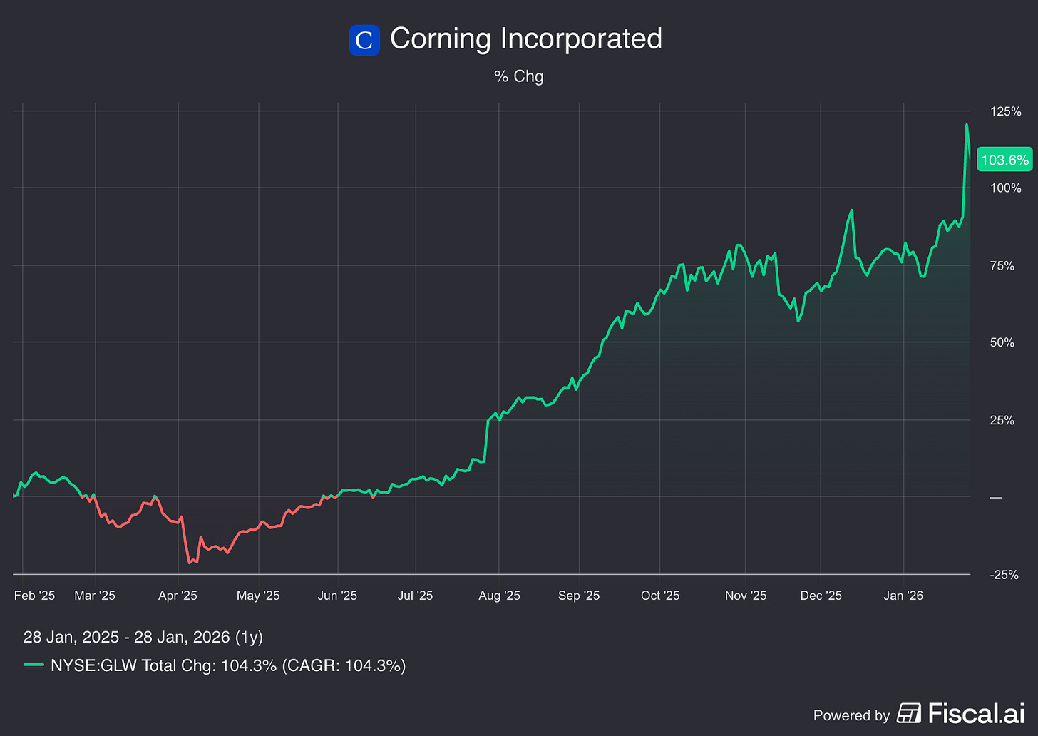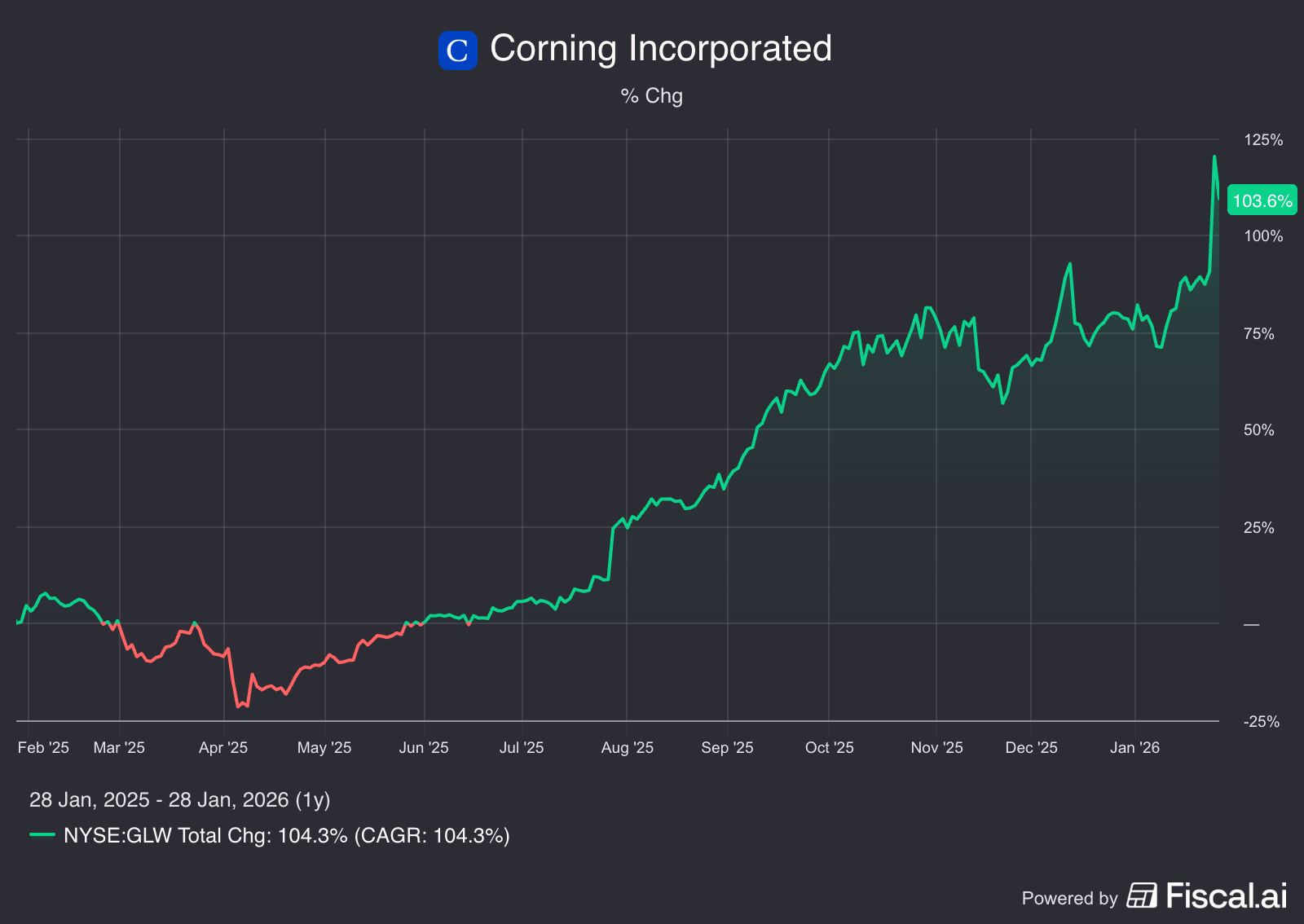 Fast-forward to today: Over the past six months, Corning’s stock has risen by over 100%, with a market value of $88 billion.