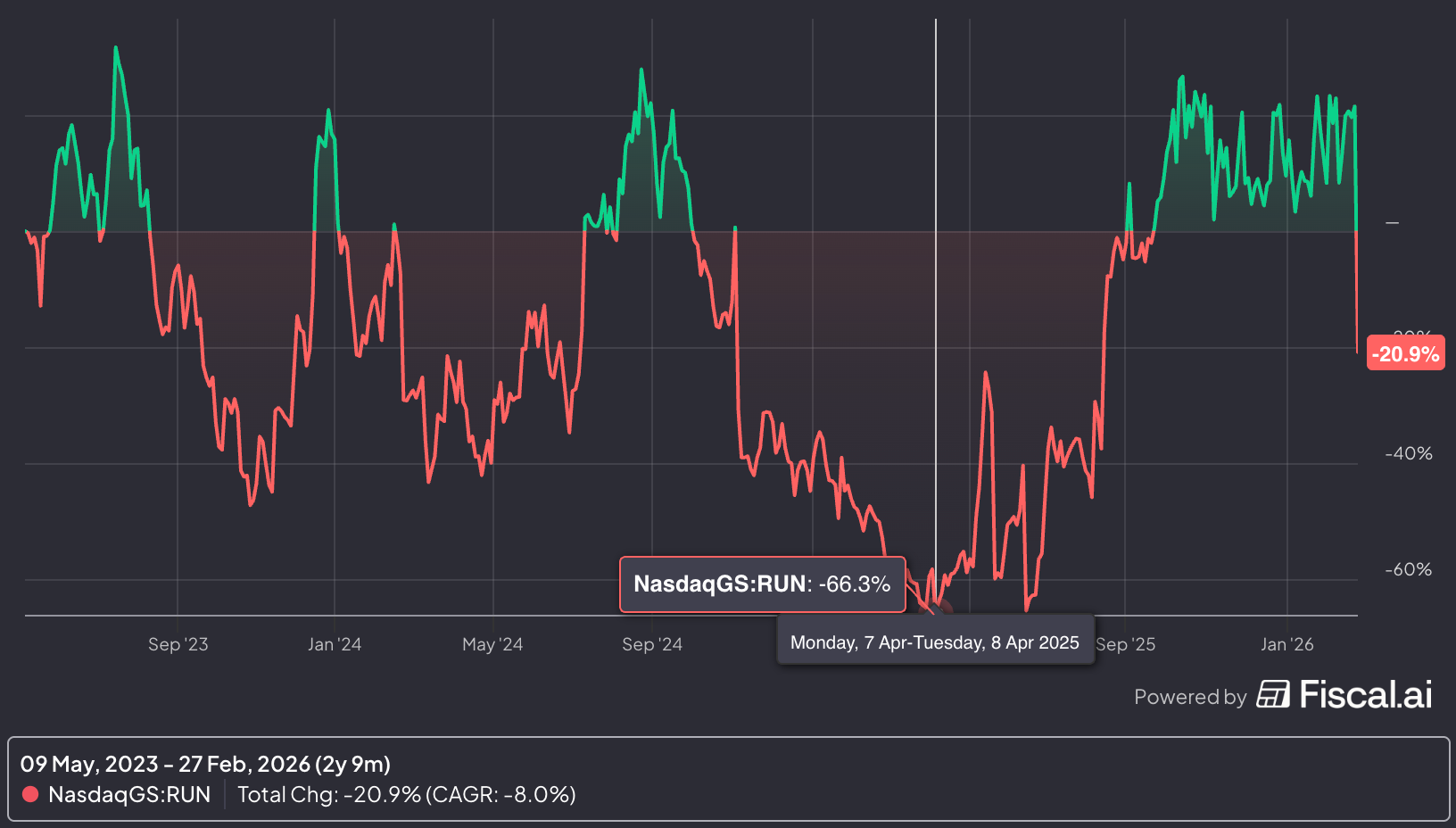 Just as individual stocks were rising by an unhinged 10%, 20%, 30% or even more on a single AI-or crypto-related headline – in what I called a throw-a-dart-market – we’re now at that point where they’re now falling just as much on earnings misses, poor guidance or merely the reality that they never deserved to be as high as they were. Look at Sunrun RUN 0.00%↑, my very first Red Flag Alert from May 9, 2023… plunging 35% Friday on guidance. As the chart below shows, it’s down 20% since my first salvo, though at one point it was off by nearly 70%.