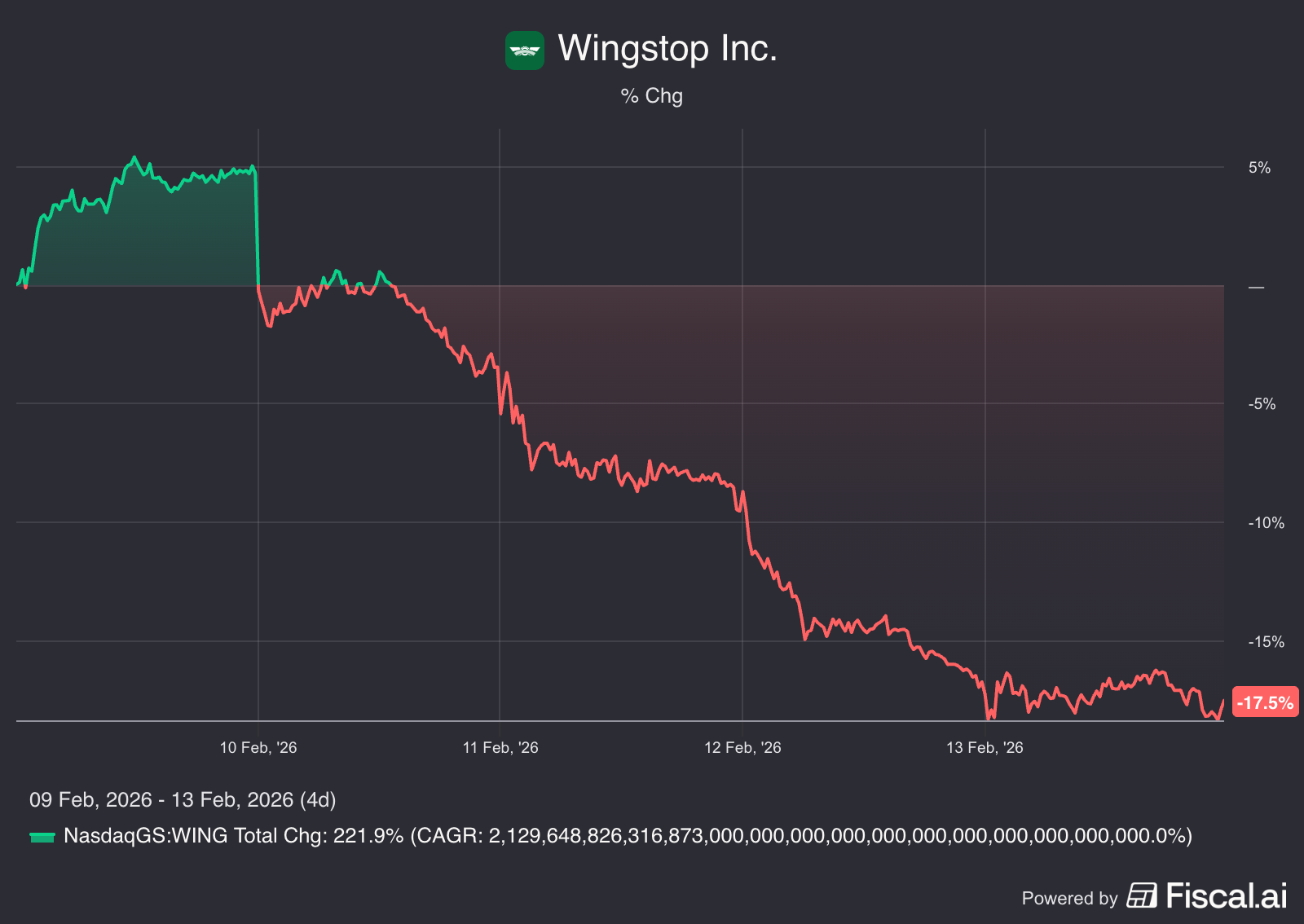 ▶It doesn’t always happen this way… But I’ll take it when it does. In last week’s Wrap, I mentioned two companies I was taking a look at: Wingstop WING 0.00%↑ and Progress Software PRGS 0.00%↑. They’re both down around 15% and 17%, respectively, over the past week. Progress was likely down because it has “software” in its name. But Wingstop, which reports earnings on Wednesday, wound up getting a few analyst downgrades.