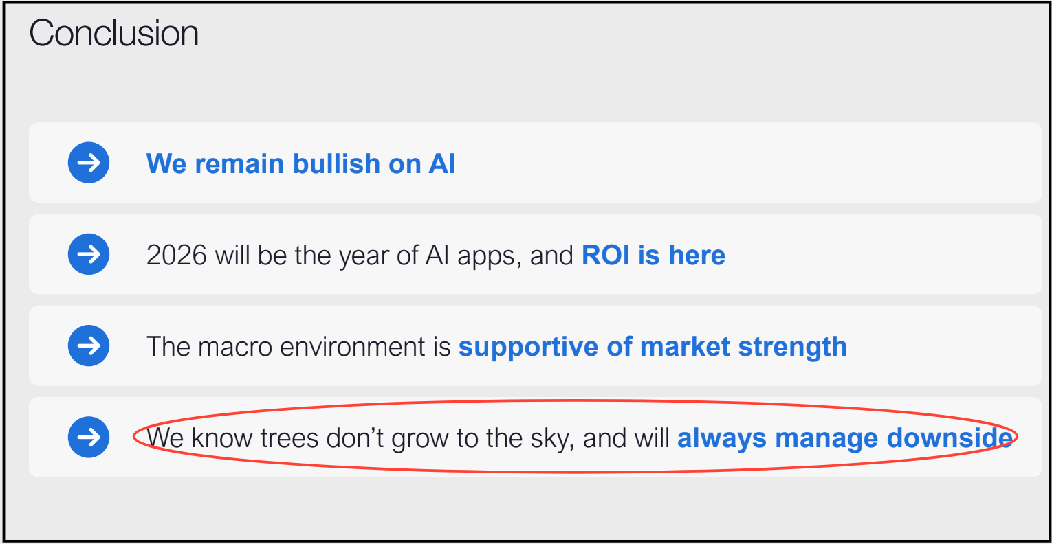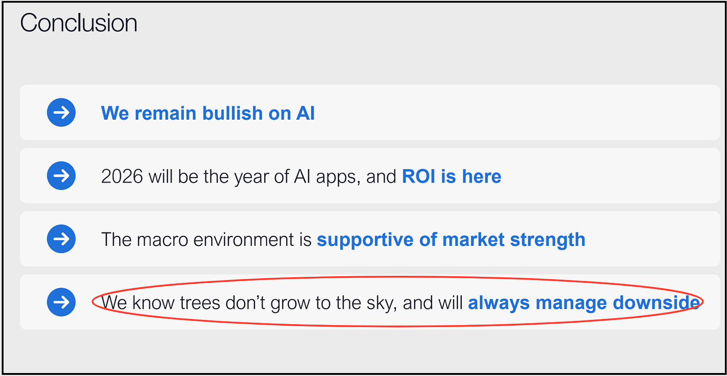 The underlying theme of all of this, of course, is AI. While the AI trade is currently off, the best bull/bear presentation I’ve seen was the month-old 59-page Public Markets Update on this from the hedge fund, Coatue Management. (Hat-tip to my pal Whitney Tilson, whose daily letter included a mention of this.) Coatue is unabashedly bullish on AI, but their view is based on the thesis lasting five to 10 years. It was the final slide – their conclusion – I liked the best… more specifically, their final point.