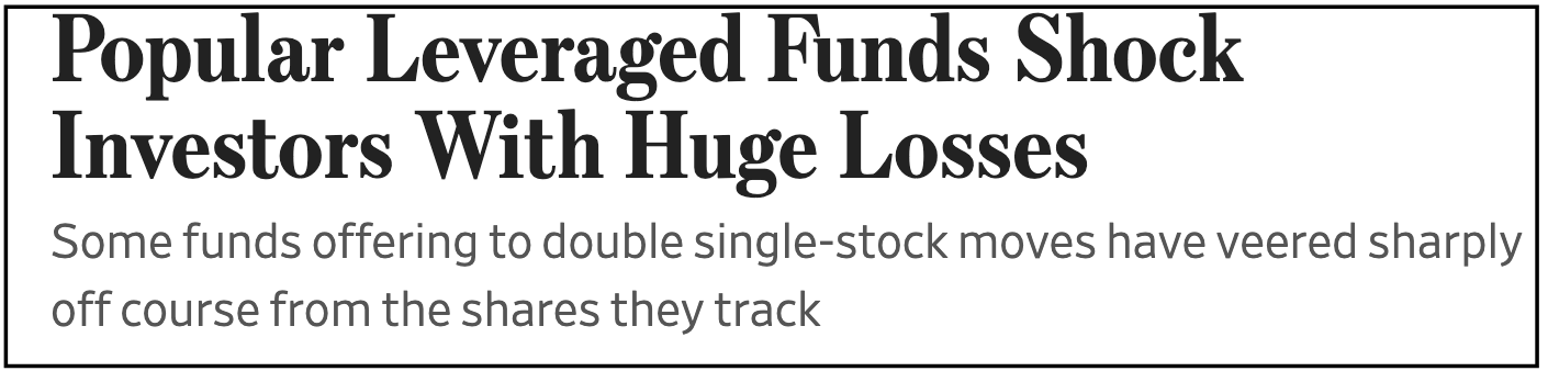 I’m kidding, of course. The only question I had was... why did it take so long? These double- and triple-leveraged ETFs, the ultimate poster children of the gamification of Wall Street, have become “disasters waiting to happen” in each cycle in recent years. Yet they’re also the favorites of the “too smart by half” crowd, who pile debt upon debt to bet in the quest for supercharged returns. This chart from the WSJ says it all...