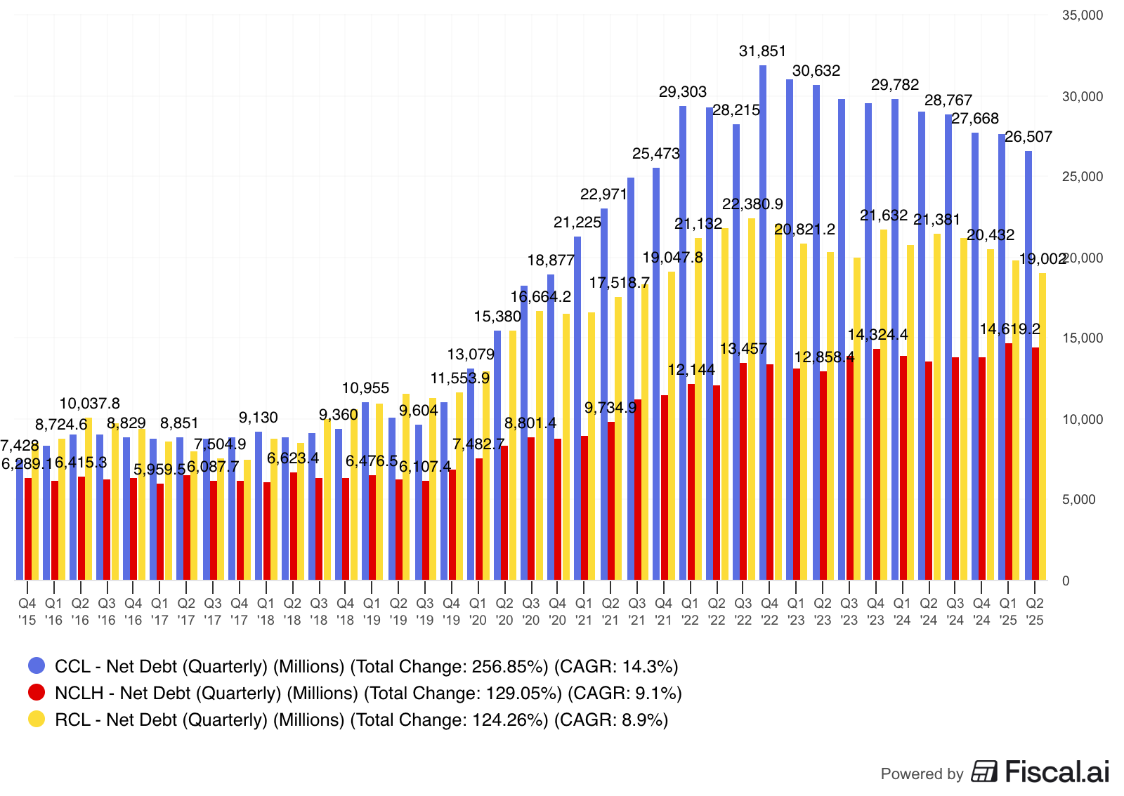 The odd man out, it would seem, is Norwegian $NCL, whose ultra-luxury Regent is about to get a new ship... but whose debt can’t seem to get out of its own way.
