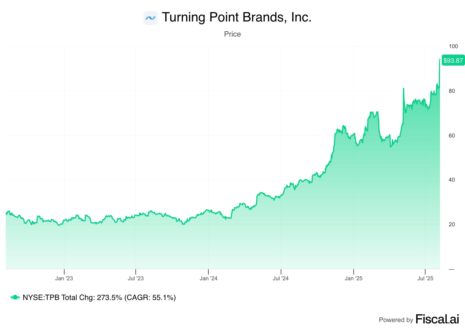 ▶ And lest you think all I do is throw poison darts... Then you obviously missed my green flag a week ago on Turning Point Brands $TPB. I explained why a fund manager I know who likes to short the sleaziest of companies, but also has an eye for quality longs, considers this manufacturer of nicotine pouches the best long idea of his career. Turning Point is a fairly new player in the rapidly growing nicotine pouch market... but appears to be on quite a trajectory of its own. That was evident when it reported earnings earlier this week that caused the stock to leap. Premium subscribers can read my full report, which includes a free preview, right here.