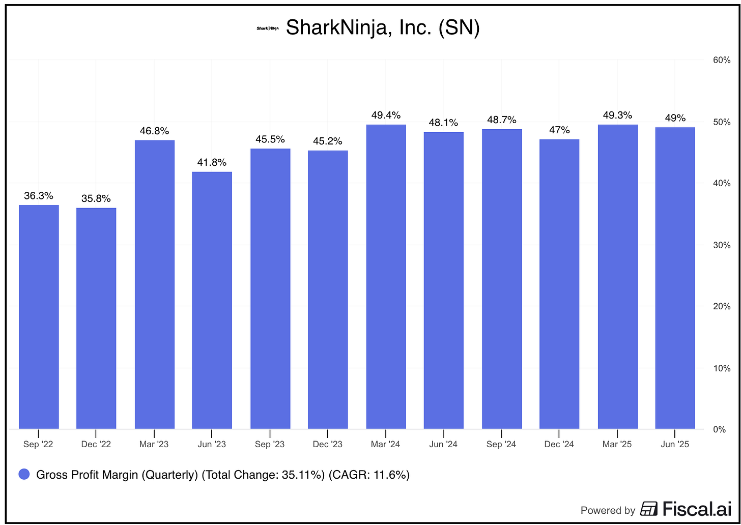 Enter SharkNinja, where gross margins are impressively higher than peers, making them a critically important part of the story. Actually, they are the story, and there’s zero room for error…
