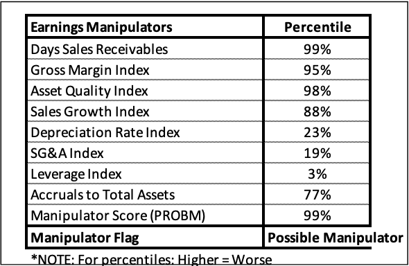 That manipulation score, by the way, can be fleeting on a monthly basis, and in this case, is irrelevant because whatever the company does is with the blessing of the government.